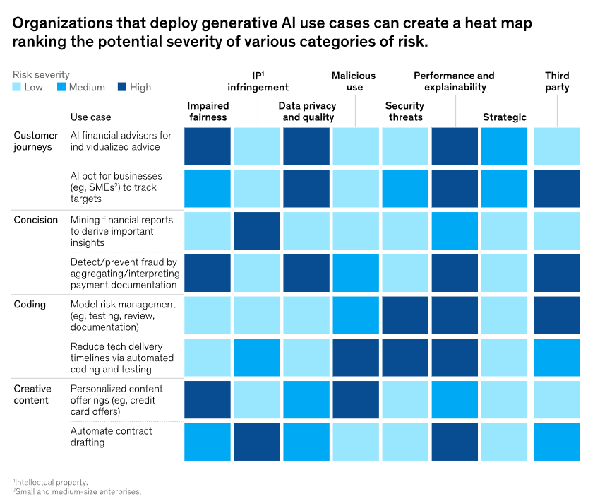 The promise of Generative AI is immense, but so are the risks. Companies should navigate these waters carefully to harness the full potential of this powerful tool while mitigating potential downsides. Insights from McKinsey’s State of AI in early 2024 and Implementing generative AI with speed and safety shed light on a strategic approach to implementing generative AI responsibly.